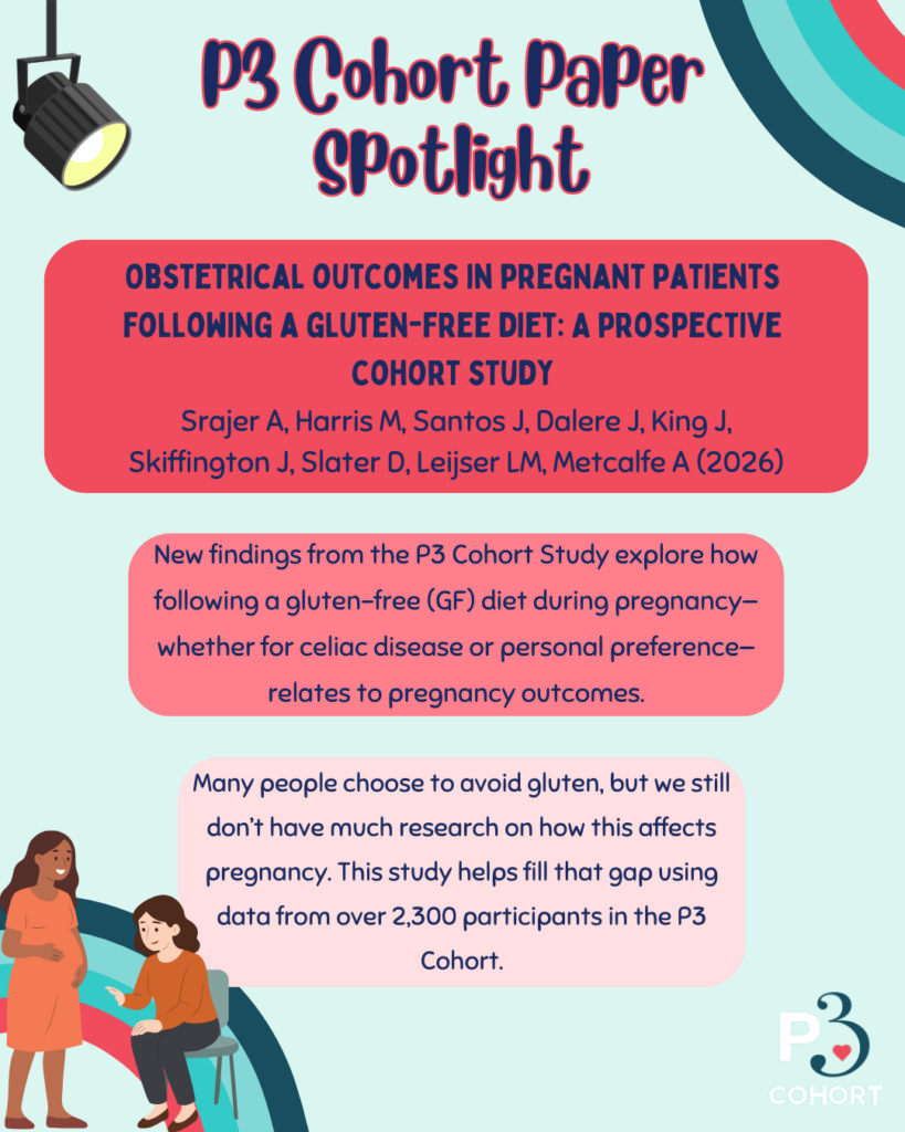 In this recent study, published in the International Journal of Gynecology & Obstetrics, Dr. Amelia Srajer and members of the P3 Cohort team explored whether following a gluten-free diet during pregnancy is linked to differences in pregnancy and birth outcomes. Gluten-free diets are becoming more common, but there is still limited research on how they may affect pregnancy.